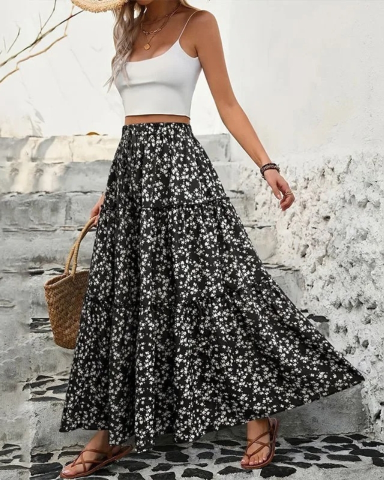 Adoptez ce modèle unique de jupe longue florale au design plissé et coupe A-line. Son style bohème-chic et son confort élastiqué en font une pièce signature pour l’automne-hiver.