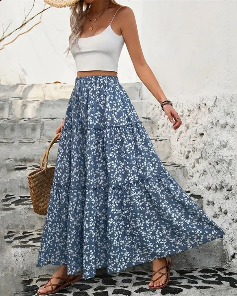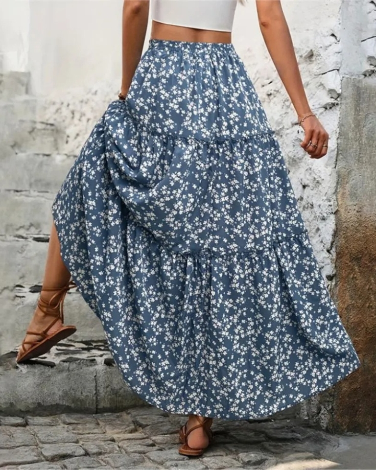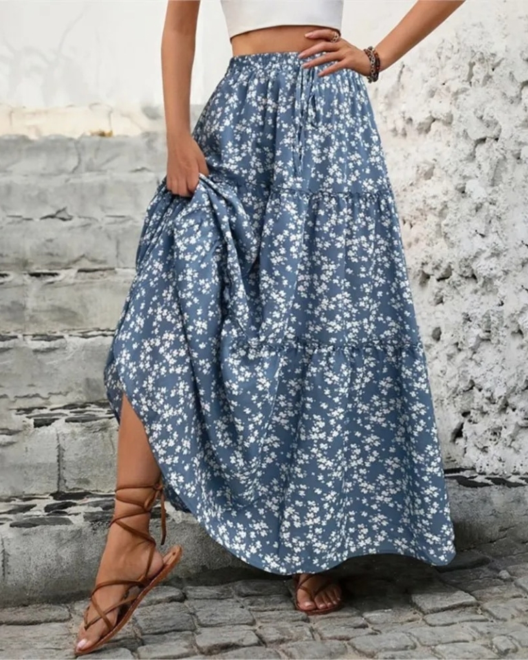 Jupe longue florale plissée polyester élégante