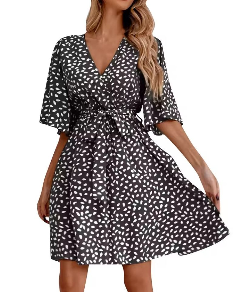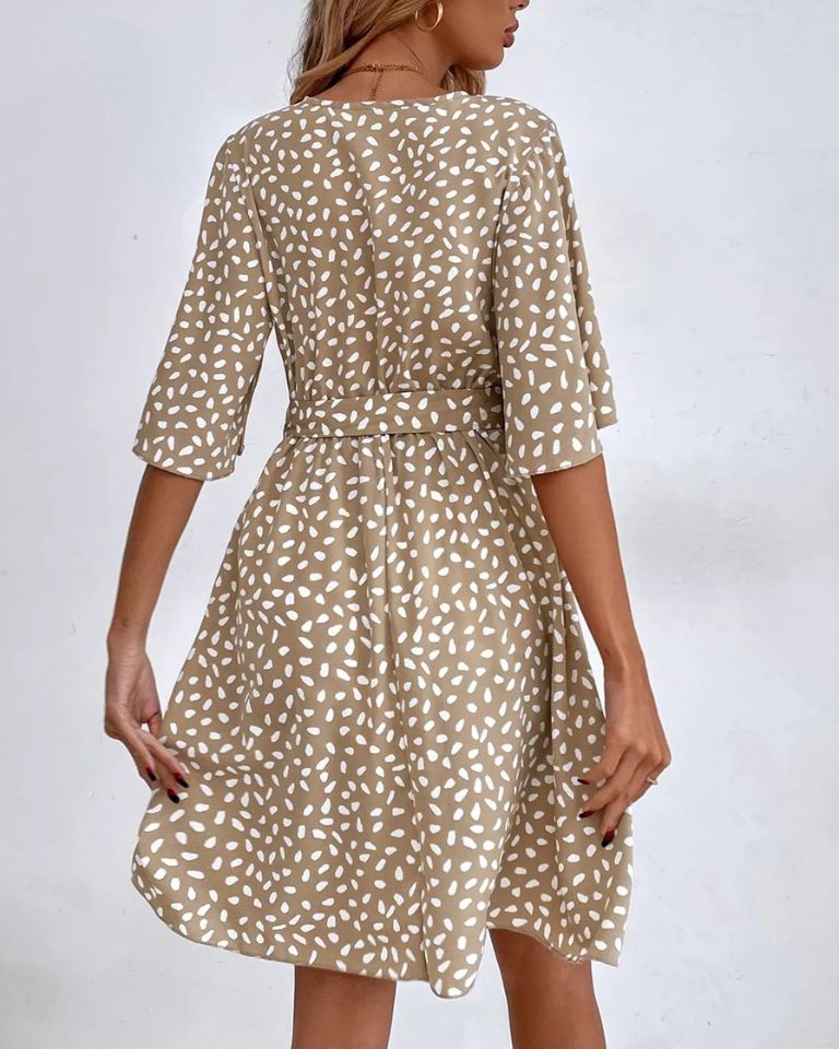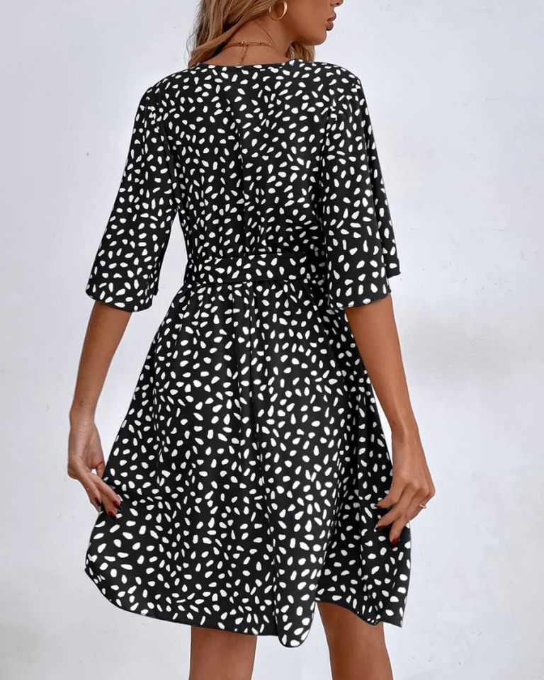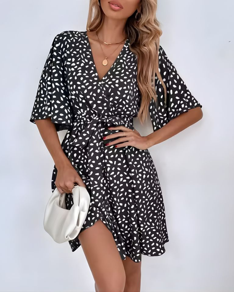 Robe courte bohème à col V et ceinture élégante