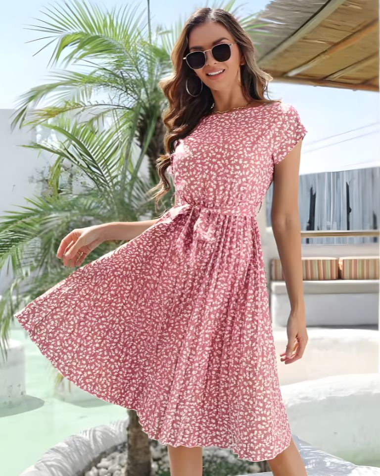 Son imprimé délicat et sa coupe mi-longue évasée évoquent la douceur des journées d’été, tandis que son tissu respirant laisse la peau libre et fraîche même sous la chaleur. Légère et aérienne, elle s’enfile facilement pour un look instantanément soigné. Polyvalente, elle convient aussi bien pour les vacances, les sorties en ville que pour un brunch dominical.
