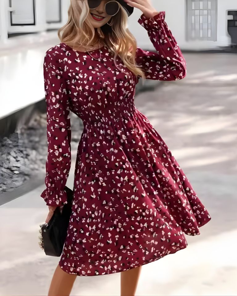 Robe midi fleurie bohème à manches longues