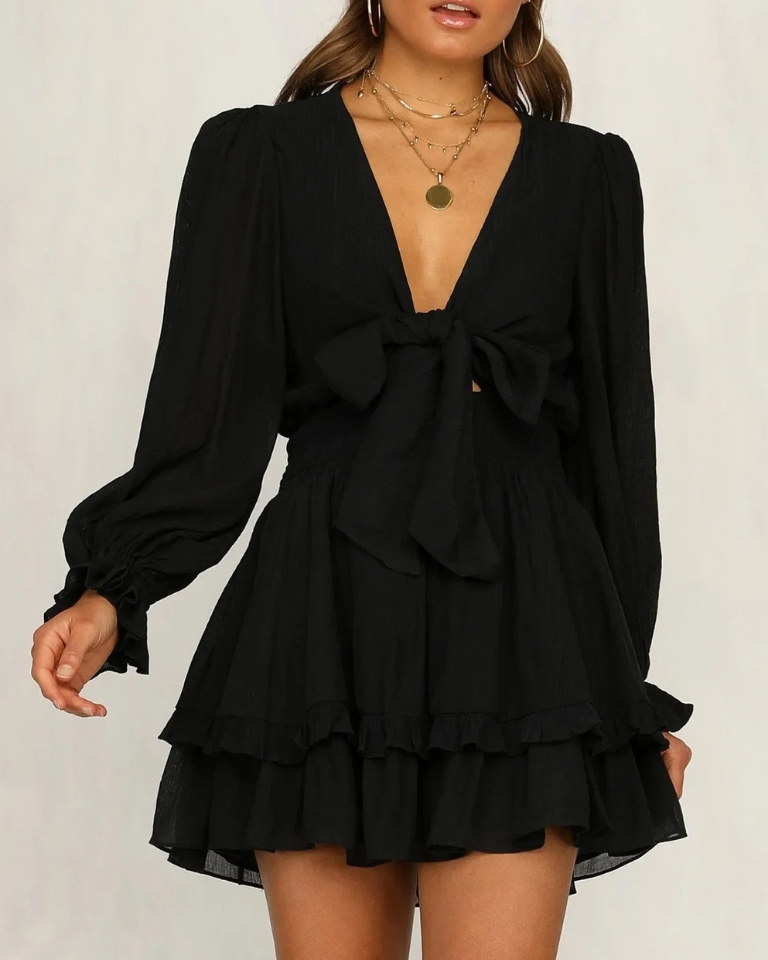 Cette robe trapèze séduit par son imprimé floral délicat et son design féminin. La coupe ajustée et la forme trapèze créent une silhouette flatteuse, tandis que le col en V et le noeud décoratif sur le devant apportent une touche de romantisme et d'élégance. Les manches longues complètent ce look printanier parfait pour les occasions spéciales ou votre quotidien. Une pièce versatile qui allie grâce et tendance avec simplicité.